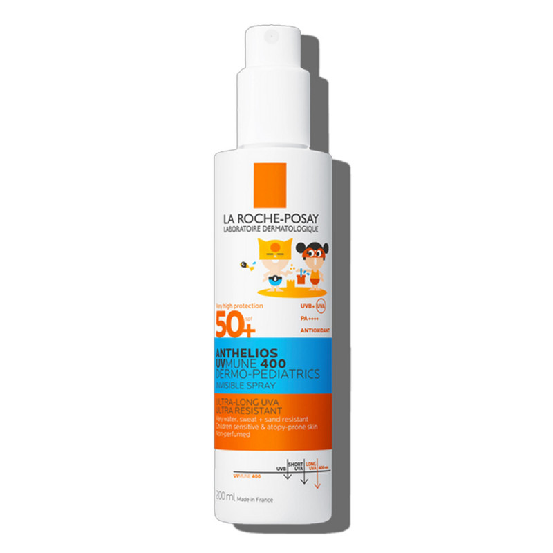 Para la piel con tendencia atópica de los niños. Protección contra rayos UVA ultralargos. Ultraresistente. Protector solar para niños en spray.