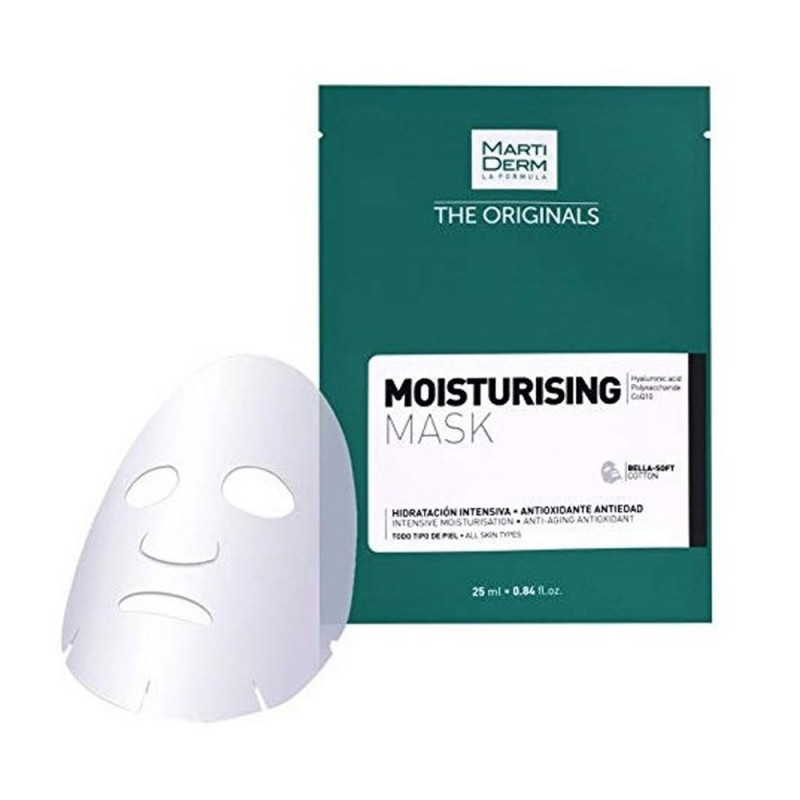 Martiderm Moisturizing Sheet Mask Es una mascarilla intensamente hidratante. Mejora la textura, firmeza y elasticidad de la piel. Para ello, su fórmula enriquecida con tres tipos de ácido hialurónico hidrata altamente la piel, alisando así su textura al mismo tiempo que la coenzima 10, con sus efectos antioxidantes y revitalizantes, potencia la regeneración cutánea. Además, este producto actúa como agente antienvejecimiento, dada la presencia en su composición del péptido Syn-Coll, potenciador de la síntesis de colágeno, que actúa en la reducción de arrugas y líneas de expresión. Además, la ceramida 3 mejora la función barrera, protegiendo frente a las agresiones externas. Con todo, la piel queda más suave, protegida y con una sensación instantánea de confort.