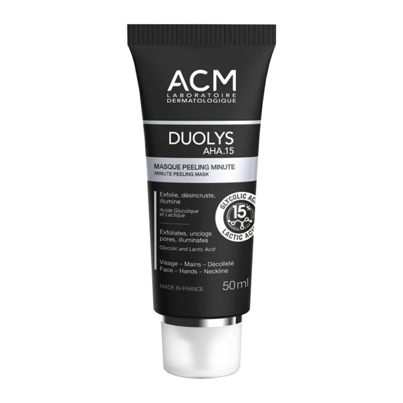 La mascarilla peeling DUOLYS AHA.15 Minute Peeling Mask exfolia, desincrusta e ilumina la piel desde la primera aplicación gracias a su fórmula compuesta por un 15% de AHA (ácido glicólico y ácido láctico).